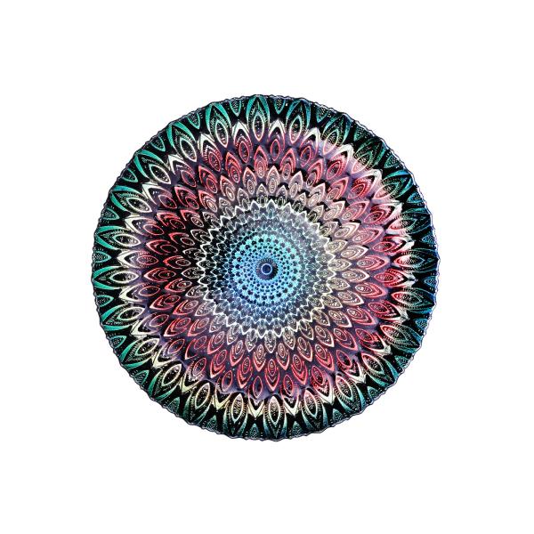 13-inch diameter (33 cm) plate crafted by High quality glass material with peacock design and eletroplating finish.