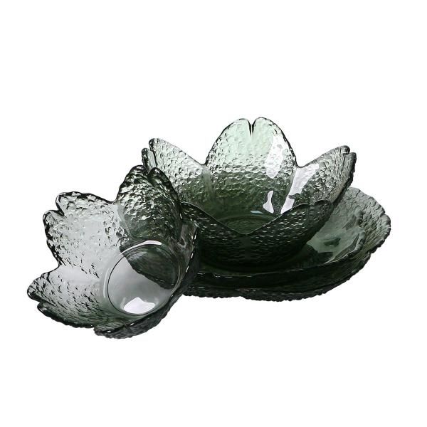 S/4 16cm Sakura Shaped Solid Colored Glass Salad Bowl, Ketchup Saucer Appetizer Plates